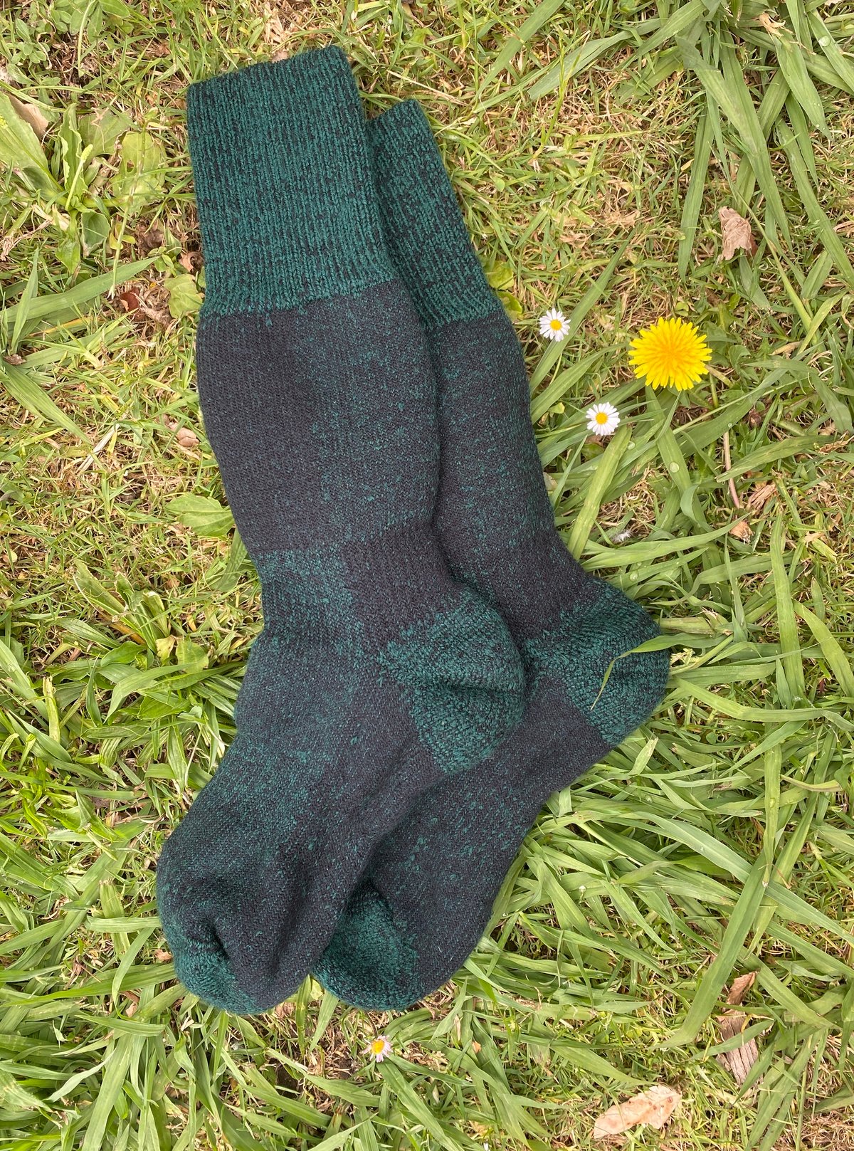 We have added compression to the arch and ankle of these socks, which means they stay up in your work or gumboot. We have also added a terry weave foot (interior cushioning) through the entire sock for added comfort.